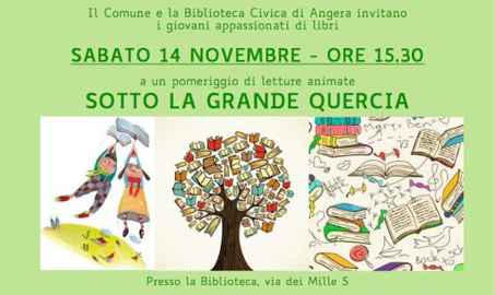 Il Comune e la Biblioteca Civica di Angera invitano i giovani appassionati di libri SABATO 14 NOVEMBRE – ORE 15.30 per un pomeriggio di letture animate