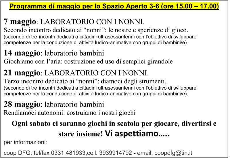 Sabato 28 Maggio Laboratorio bambini Rendiamoci autonomi: costruiamo i nostri giochi,